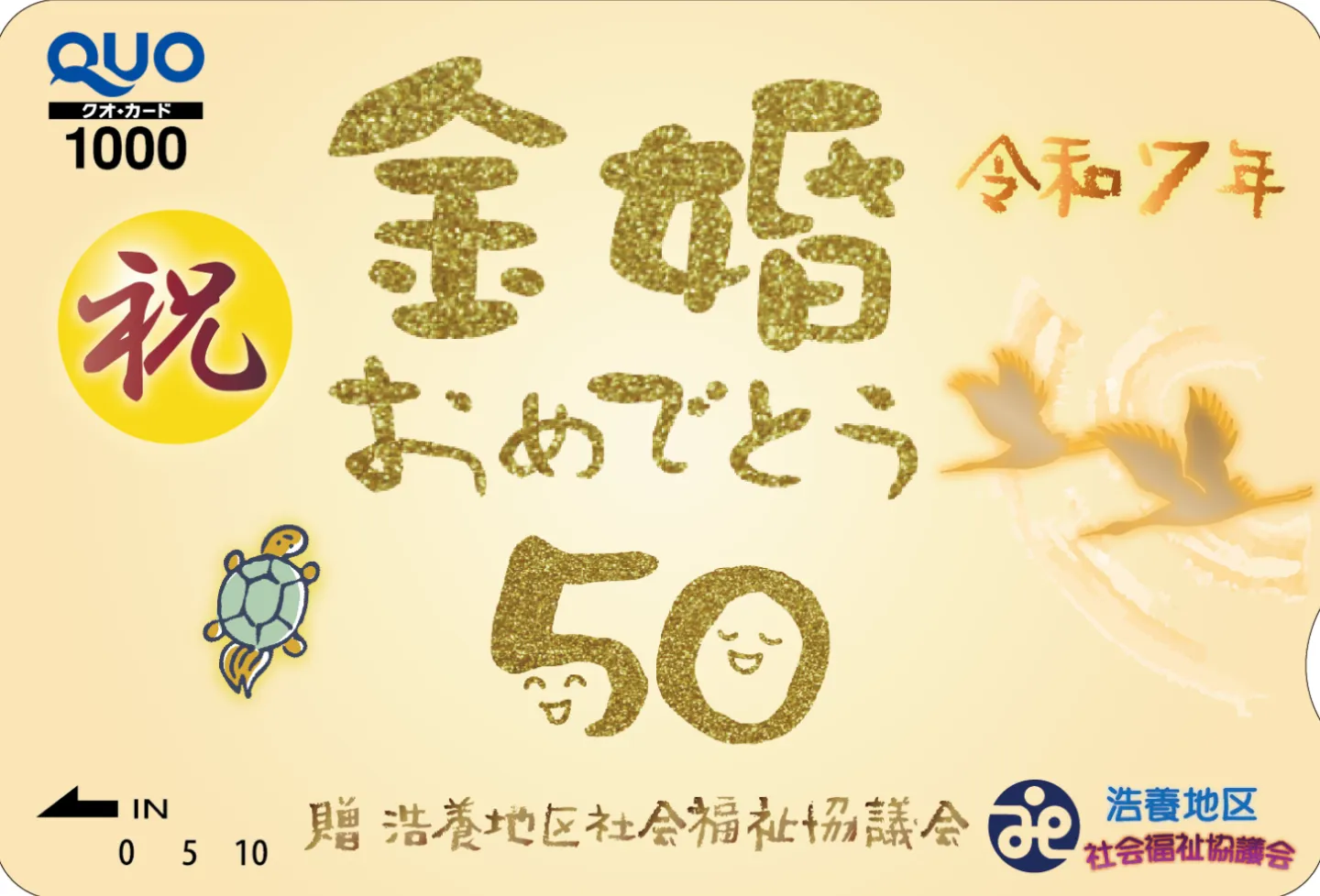 金婚ご夫婦に記念品を贈呈しました。高齢者のつどいに参加されたご夫婦にはそこでお渡しし、参加できなかったご夫婦はご自宅にお届けしました。お申込みいただいた8組のご夫婦に贈呈しました。