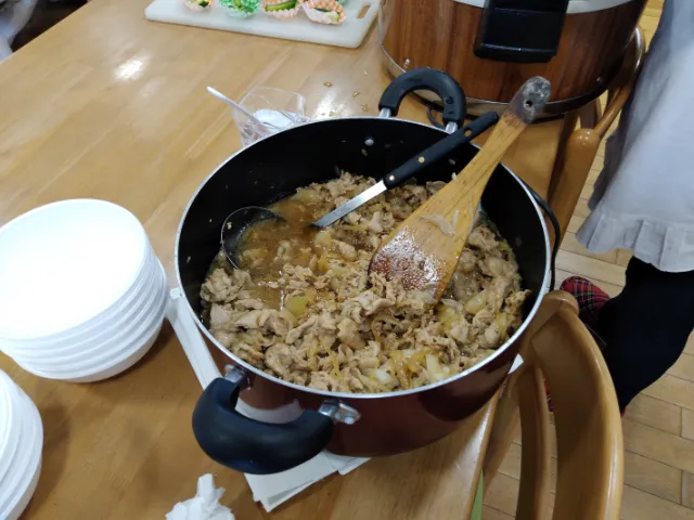 今回も、佐々木農場産房総ポークを使用した柔らかくて美味しい豚丼をいただきました。お年寄りにも食べやすく大変好評でした。